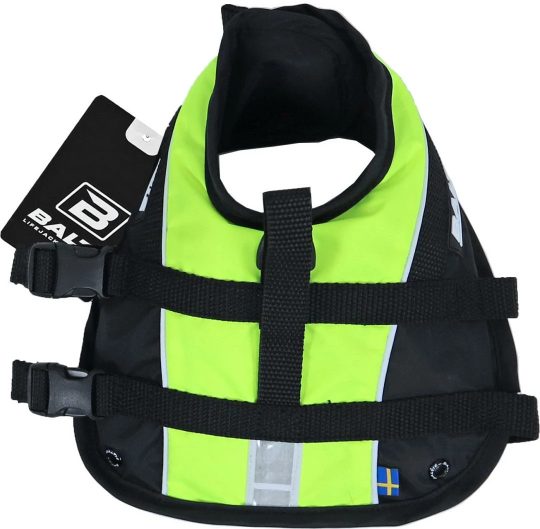 Duurzaam hondenzwemvest met een sterk drijfvermogen en goede zichtbaarheid door de opvallende kleur en reflecterende elementen.