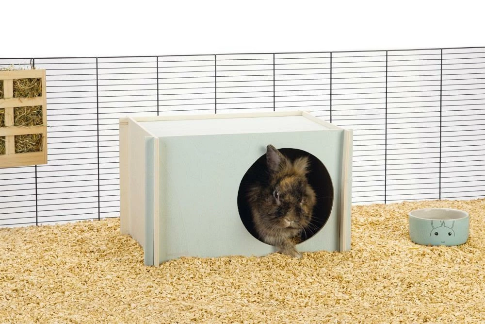Het Beeztees knaagdierhuisje Bildup is een fijn huisje van hout voor je knaagdier. Door het gebruikte hout en zachte pastel kleuren, staat deze ook nog eens heel mooi in de kooi. Het knaagdierhuisje is eenvoudig in elkaar te zetten, door de verschillende onderdelen in elkaar te schuiven.