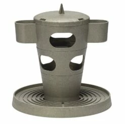 Aan de zijkanten van de snacktoren bevinden zich twee bakjes, waar je ook iets lekkers in kan stoppen. Voor het afvoeren van regenwater is de bodemplaat van de toren voorzien van een afwateringskanaal. Tevens bevinden zich in de bodemplaat 4 kleine gaatjes zodat je de toren vast kan zetten in de grond. De snacktoren kan worden gereinigd in de vaatwasser op eco-stand. De snacktoren is ecologisch verantwoord, deze is namelijk gemaakt van 100% gerecycled plastic afkomstig van ca. 132 drinkpakken.