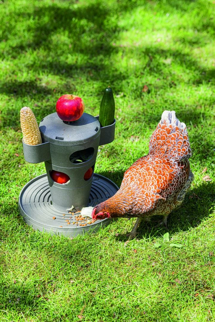 Met deze Beeztees snacktoren Kip kan je jouw kip voorzien van kippenvoer en overheerlijke kippensnacks. Het voerbakgedeelte bevindt zich in de toren. In deze verschillende niveaus, welke voorzien zijn van gaten, kan het kippenvoer worden gestopt. Bovenop de snacktoren bevindt zich een punt, waar je een snack zoals een appel of maiskolf op kan prikken.