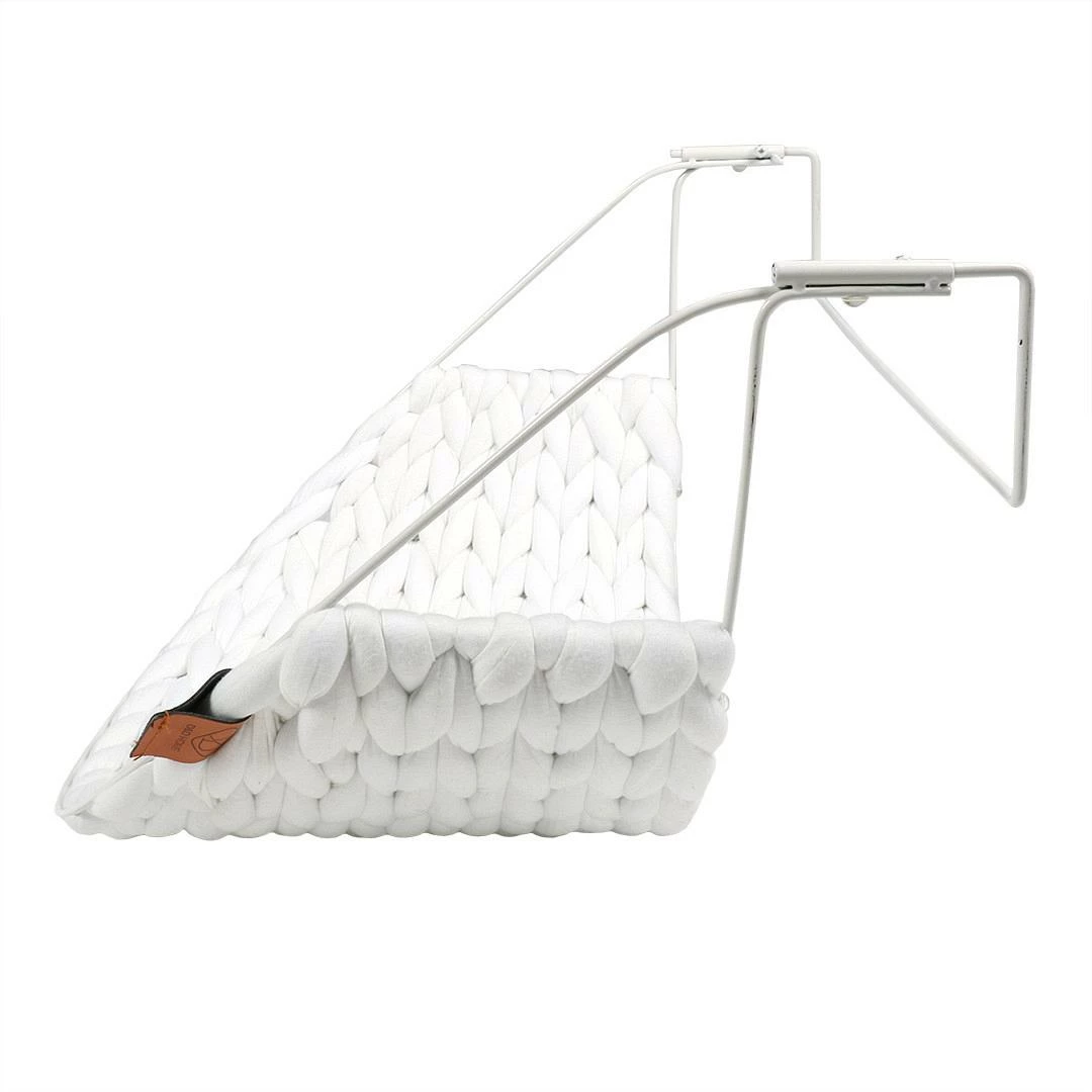 Door het metalen geraamte vormt het een stevig geheel. Het liggedeelte is gemaakt van gevlochten polyfiber katoentouw.