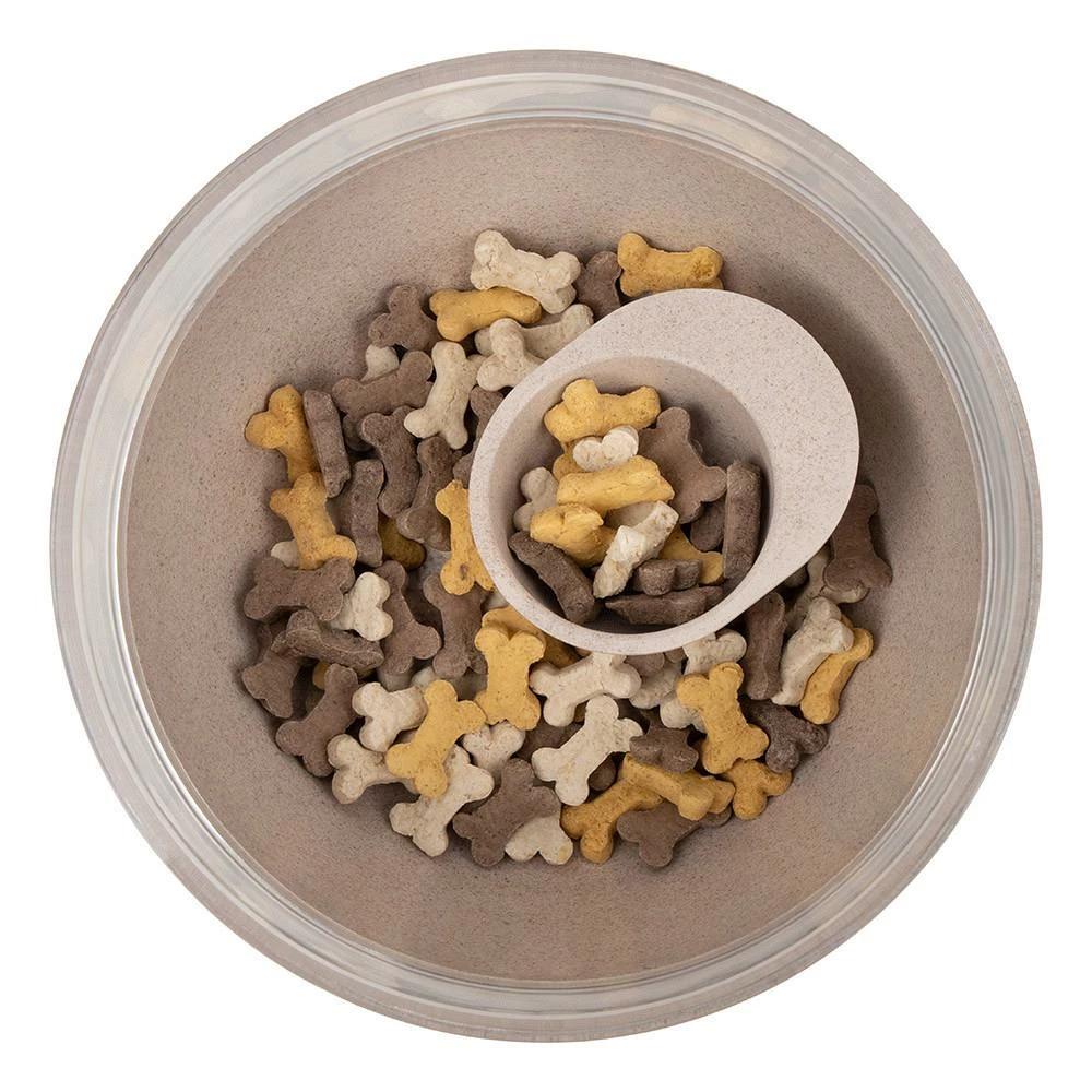 Het verstoppen van snacks voor je hond is verleden tijd met deze stijlvolle District 70 Treat Jar. Deze praktische voorraadpot is ideaal voor het vers houden van snacks of brokjes tijdens een weekendje weg, op vakantie of thuis. Deze voorraadpot gemaakt van bamboe en heeft een siliconen antislip bodem, waardoor het stevig op een plank of in de kast blijft staan. Ook geschikt voor de vaatwasser of om te spoelen met lauw water.
