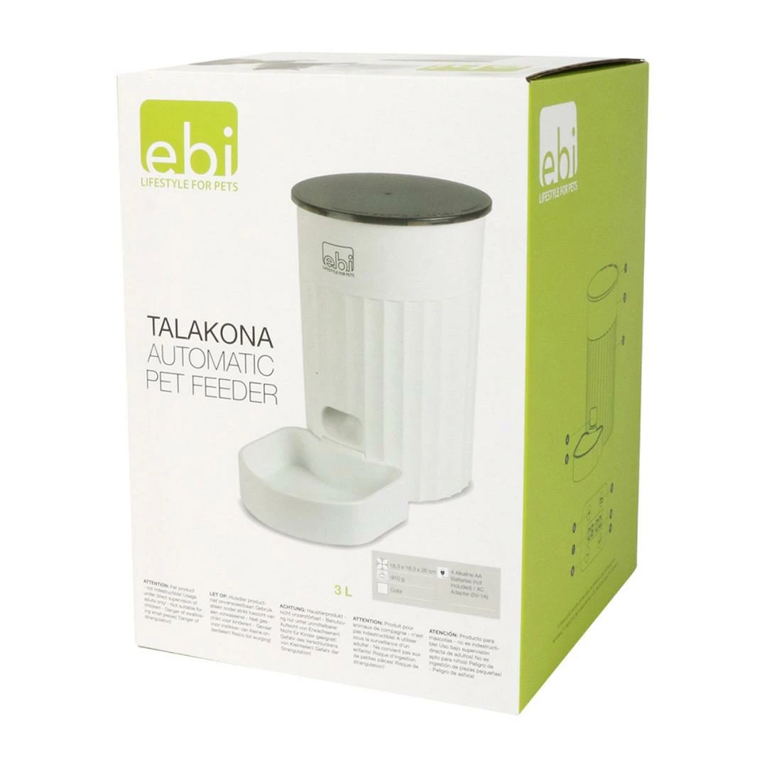 De smart feeder Talakona is een programmeerbaar voersysteem voor honden en katten, ideaal als je onverwacht een paar uur moet overwerken en je huisdier gewend is om op een vast moment eten te krijgen. Talakona heeft een inhoud van 3 liter en werkt met porties van 20 gram. Stel in hoeveel porties je huisdier krijgt en op welke tijdstippen.