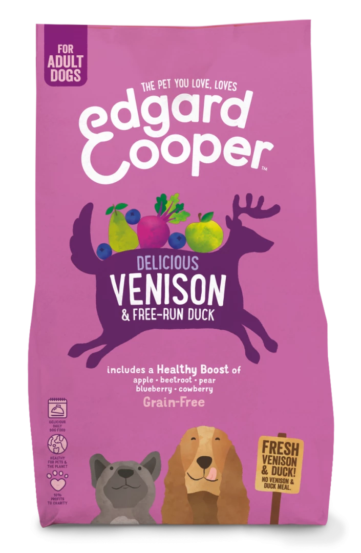 In Edgard & Cooper hondenvoer Adult hert en scharreleend wordt enkel vers hert en verse scharreleend gebruikt en absoluut geen bewerkt, overgaar of gedroogd hert en eend of meel van hert of eend dat moeilijker is voor de buikjes om te verteren. Daarnaast wordt er een supergezonde mix van fruit, groenten en kruiden toegevoegd.
