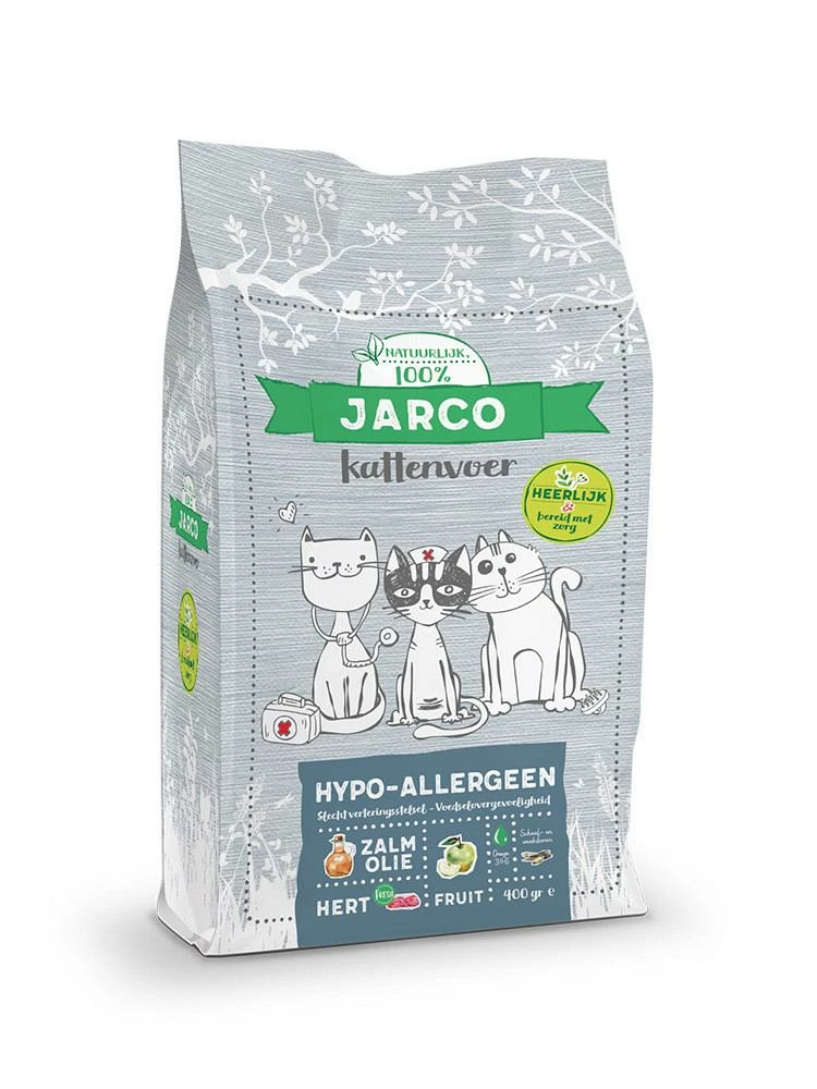 Jarco Zorg kattenvoer Premiun Vers Hypoallergeen is een tarweglutenvrij premium product met vers hert bereid met zorg. Zeer geschikt voor katten met een slecht verteringsstelsel en voedselovergevoeligheid.