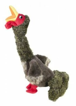 De Kong Shakers Honkers kalkoen heeft een lange vorm met een nek met daarin een structuur die aanzet tot kauwen. Door de slappe poten kan de hond lekker met de kalkoen schudden.