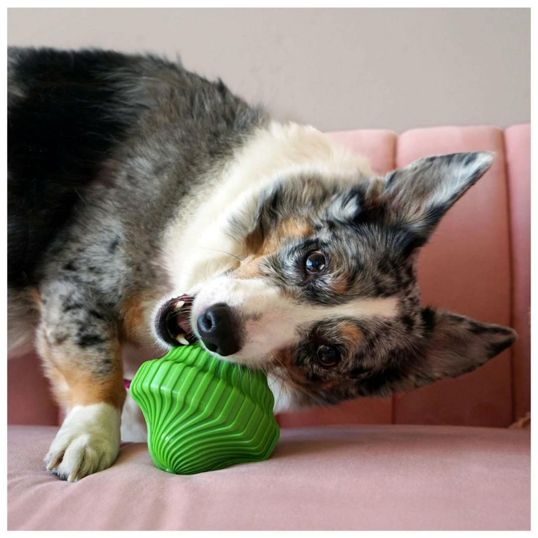 Stuiter- en rolspeeltje voorzien van een pieper. Makkelijk vast te pakken door honden.