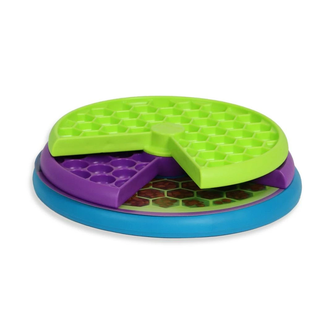 Hondenspel en slowfeeder in één. De verschillende lagen kunnen gevuld worden met lekkers. Voor jouw hond de uitdaging om het er weer tussenuit te krijgen.