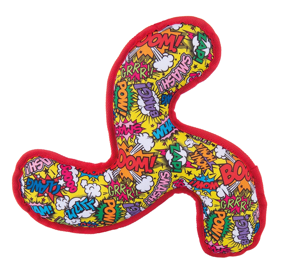 Vrolijk en stevig speeltje voor de hond. De boomerang heeft dubbelgestikte naden en is waterdicht.