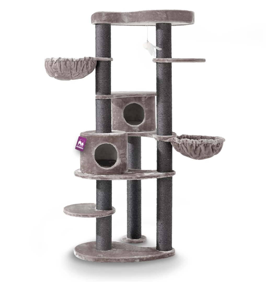 Petrebels Grace 190 is een heerlijk hoge krabpaal en een ode aan Yin-Yang. Yin vind je terug in de zachtheid van de pluche en slaapplekjes. En Yang in de robuuste krabpalen en bodemplaat. Leuk detail: de bekende Yin-Yang vorm zie je terug in de bodemplaat en de XXL-loungemand bovenin. En die vorm is nog handig ook, want daardoor past deze krabpaal ook makkelijk in een hoek.