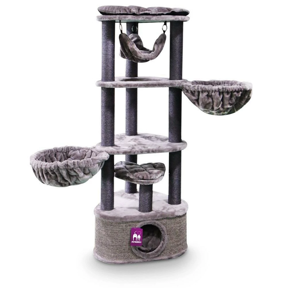 De Petrebels krabmeubel Kings & Queens Catharina 160 is een aantrekkelijke krabpaal met zes stammen van 9 cm breed en is ideaal als hoekmodel. De slaapruimte op de bodem heeft een dikte van 4 cm en zorgt voor een zeer goede stabiliteit.