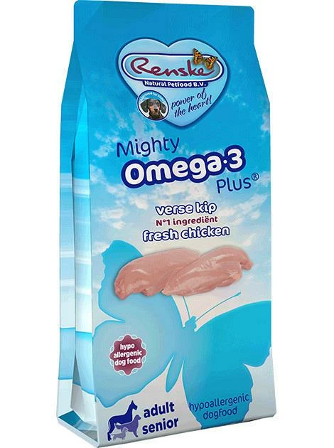 Renske hondenvoer Mighty Omega Plus (MOP) is een gezonde, smakelijke voeding op basis van verse kip en rijst. De verse kip in dit product zorgt ervoor dat de brok zeer licht verteerbaar is. Het hoge gehalte aan omega-3 vetzuren draagt bij aan een gezonde huid en een stralende vacht. Deze voeding is glutenvrij en geschikt vanaf 3 maanden. Niet geschikt voor zeer kleine honden vanwege het formaat van de brok.