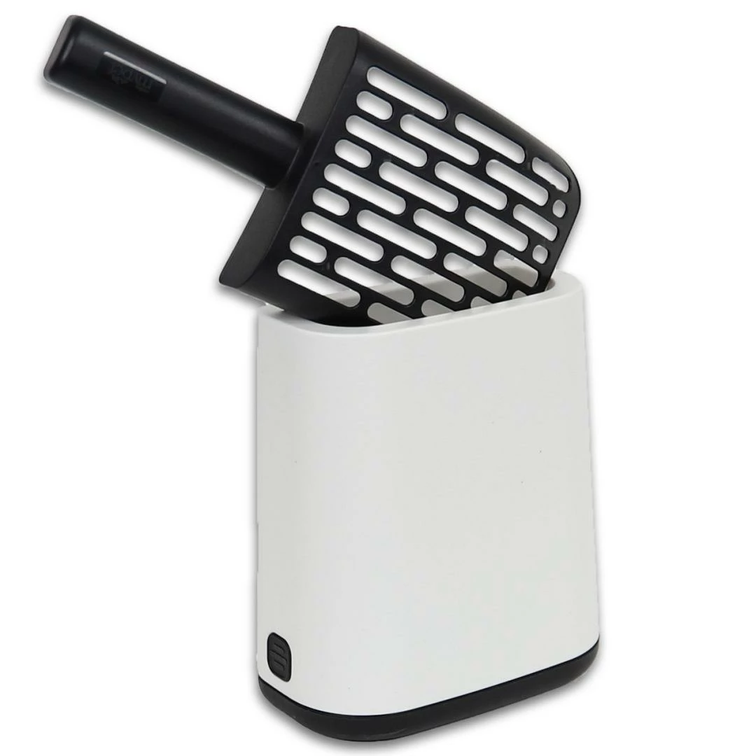 Kattenbakschep met houder gemaakt van 100% gerecycled kunststof. Wordt geleverd met rol van 16 stuks hygiënezakjes.