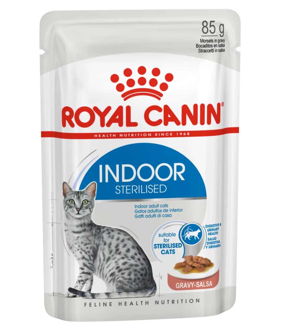 Royal Canin kattenvoer Indoor in Gravy is een voeding voor katten met een gezond gewicht die alleen binnenshuis leven.