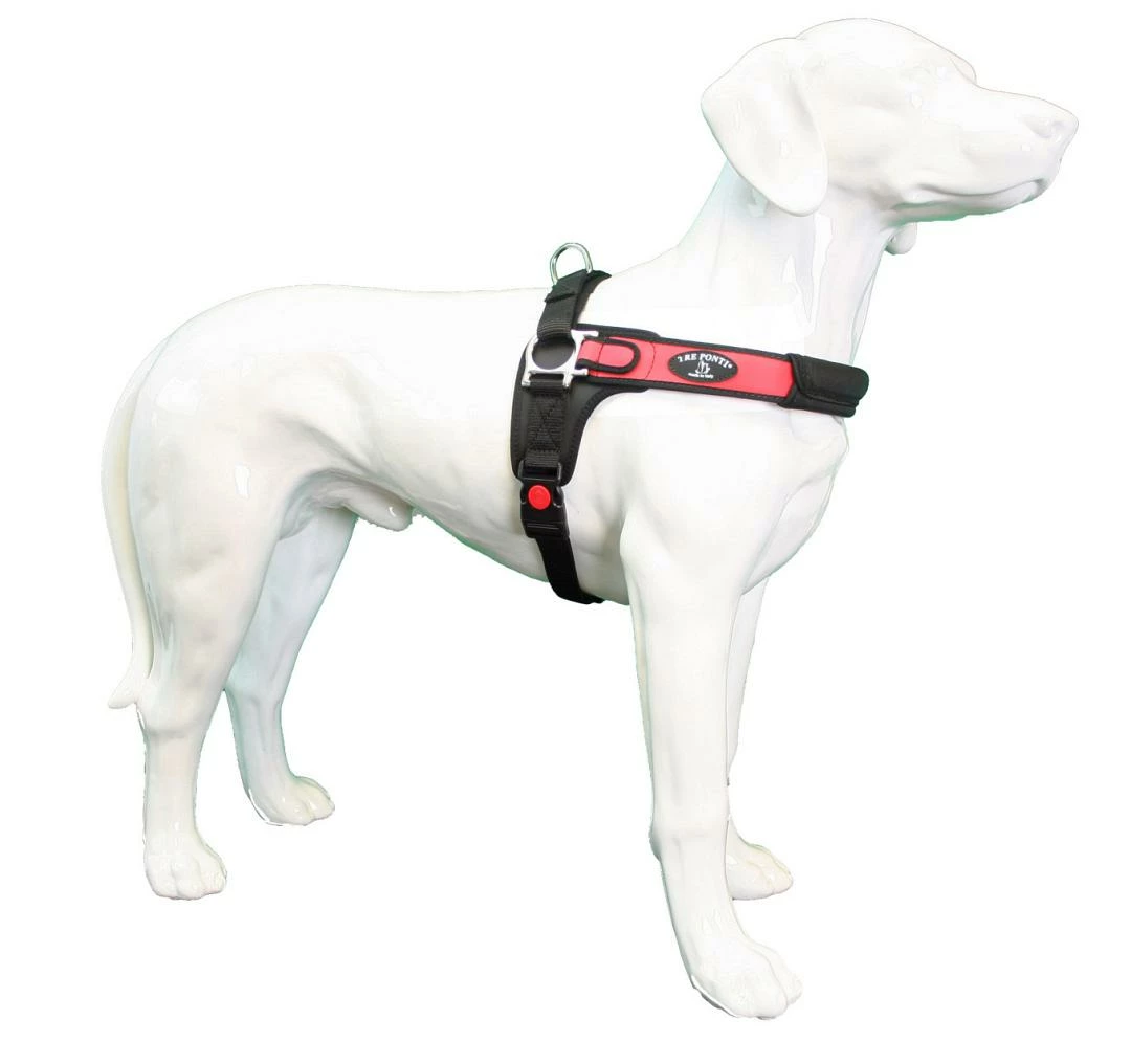 Het bijzonder innovatieve ontwerp geeft de hond een ruime bewegingsvrijheid, zoals bij alle Tre Ponti tuigen. Het tuig heeft geen negatieve drukpunten, echter bij het strekken van de lijn krijgt de hond een pijnloze en lichte druk op de zijflanken. Dit zal bij elke hond een reactie uitlokken. De hond zal meteen inhouden, of stil blijven staan en naar u omkijken om te zien wat er aan de hand is. Door deze reactie te belonen kan het vervelende trekken van de hond beheersbaar worden en met de juiste aanpak zelfs volledig worden afgeleerd. Deze bijzonder innovatieve tuigen zijn sterk en reiken u de ’tools’ aan om negatief gedrag, het trekken en uitvallen aan de lijn, op een eenvoudige wijze te kunnen doorbreken en/of te beheersen.