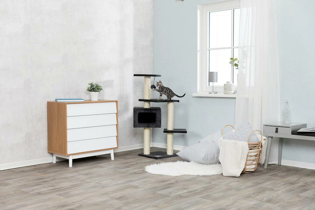 TRIXIE Krabpaal Palamos heeft een heerlijk zachte schuilplaats binnenin. De krabpaal is gemaakt van jute en heeft een pluchen bekleding.