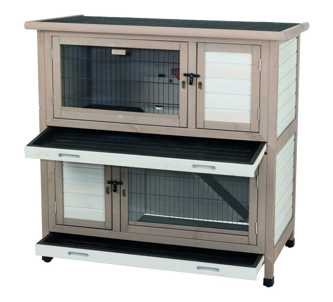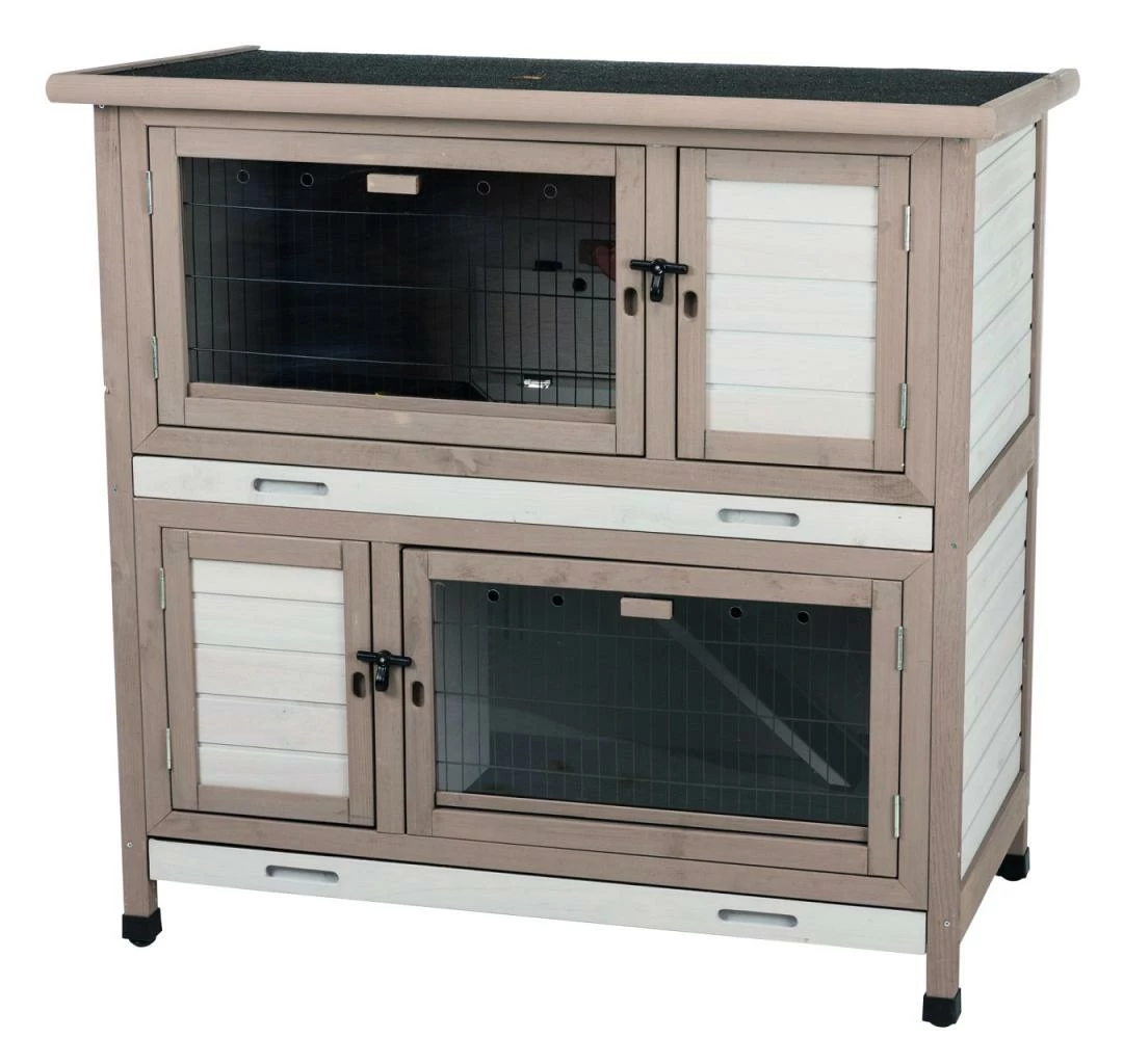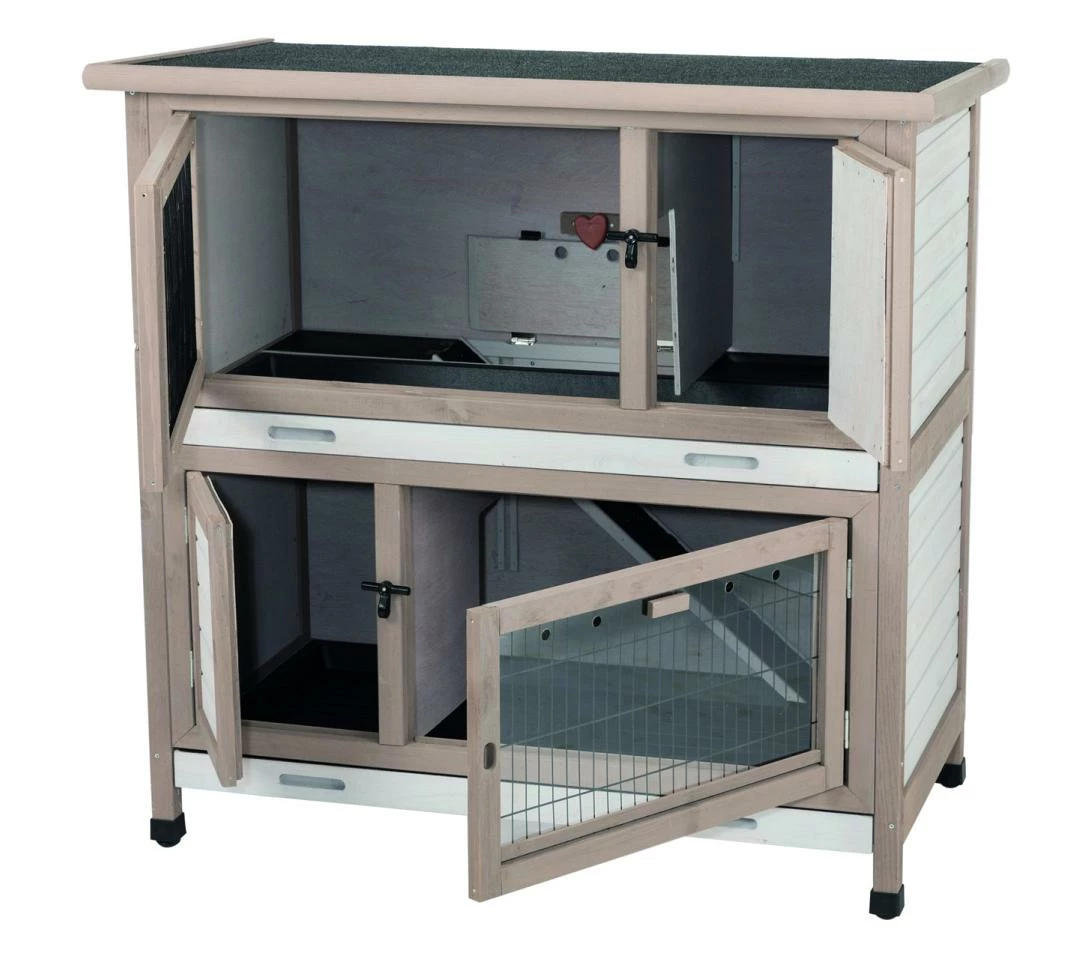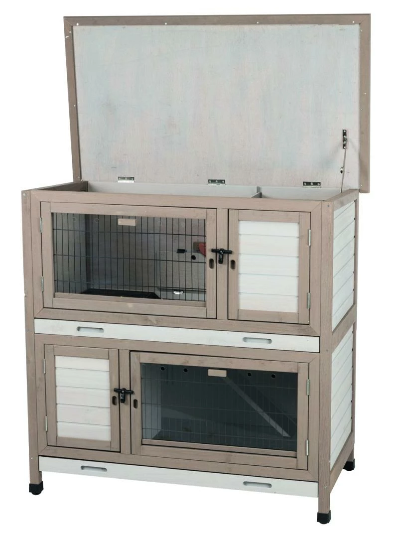 TRIXIE Natura Knaagdierhok met Isolatie bestaat uit twee verdiepingen. De buitenwanden, onderste bak en dak zijn geïsoleerd met tempex. Het hok heeft een schuilplaats en deur op elke verdieping. De pootjes zorgen voor een goede ventilatie onder het verblijf en beschermen tegen optrekkend vocht en kou.